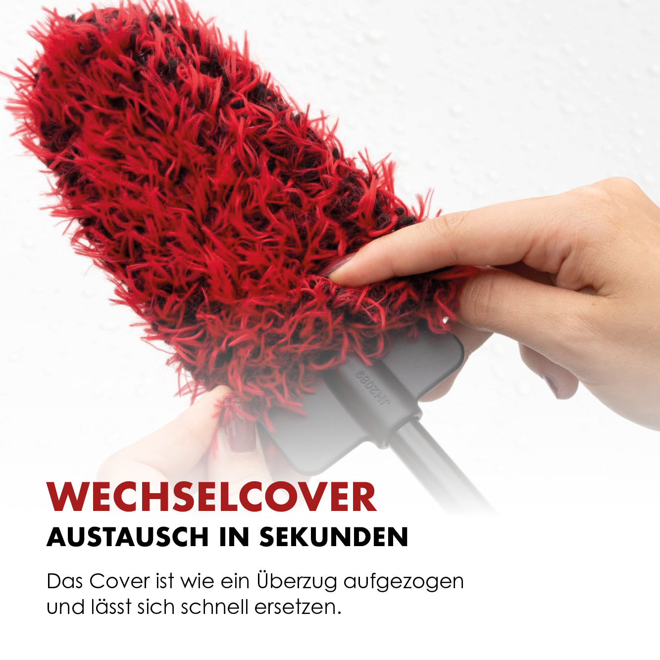 The microfiber cover can be easily removed and replaced . This keeps your brush hygienic, effective, and ready for use at any time – without any tools or effort.