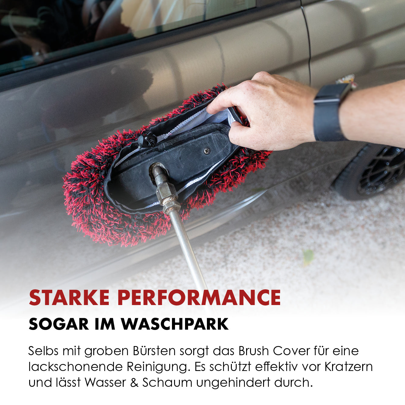 För att proffsen vet vad som är viktigt: Vårt Brush Cover erbjuder maximalt skydd, obegränsad rengöringsprestanda och en genomtänkt passform som anpassar sig till varje tvättborste. Så blir varje biltvätt på tvättstationen till säker vård – istället för en risk för repor.